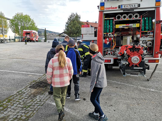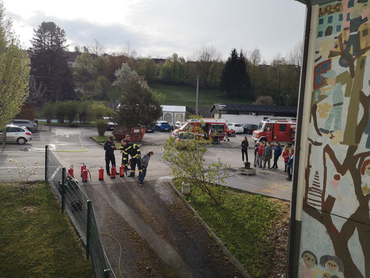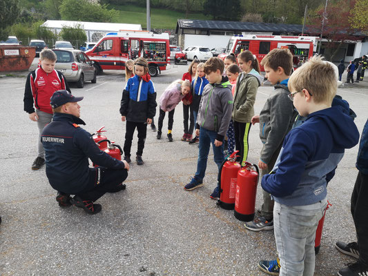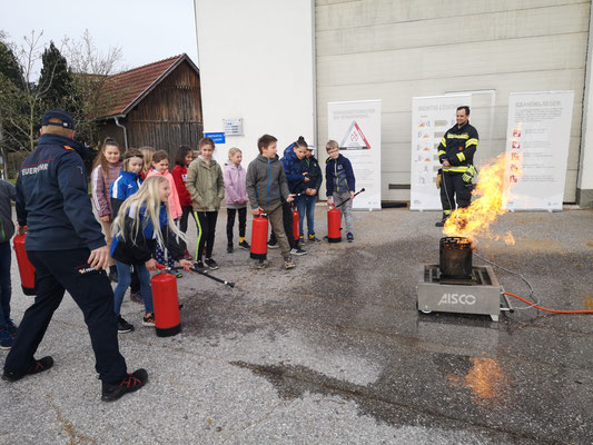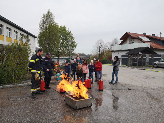 Ende April war es wieder so weit, „Feuerwehr hautnah“ statt „Schulbank drücken“ stand für knapp 100 Schülerinnen und Schüler der Volksschule Steinbach/Steyr am Stundenplan. Im Zuge des Projektes „Gemeinsam.Sicher.Feuerwehr“ konnten die Mädchen und Burschen in Begleitung der Lehrerinnen einen interessanten Vormittag mit den Feuerwehren Steinbach, Pieslwang und Schweinsegg/Zehetner, verbringen. Gestartet wurde im Klassenzimmer mit der Vorstellung des Feuerwehrwesens, die Einsatzbekleidung der Feuerwehrmitglieder, den Atemschutz und einem kleinen Theorieteil welcher im Vorhinein schon mit den Lehrerinnen erlernt wurde. Wie setze ich einen Notruf ab? Wer hat welche Notrufnummern? All diese Fragen wurden von allen Schülern bravourös beantwortet. Anschließend ging es, aufgeteilt in 4 Klassen, in den praktischen Bereich über. Technische Rettungsgeräte wie HD Rohr, der Fettbrandsimulator und die Feuerlöscher durften die Mädchen und Burschen hautnah erleben. Ein besonderer Dank gilt den teilnehmenden Feuerwehrmitgliedern, welche sich Urlaub und Zeit für diesen Vormittag genommen hatten.