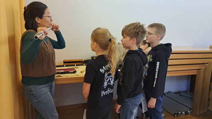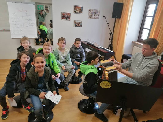 Musikschuldirektorin Monika Lichtenwöhrer hat uns in die Musikschule Steinbach eingeladen. Die Kinder durften die verschiedensten Instrumente ausprobieren.